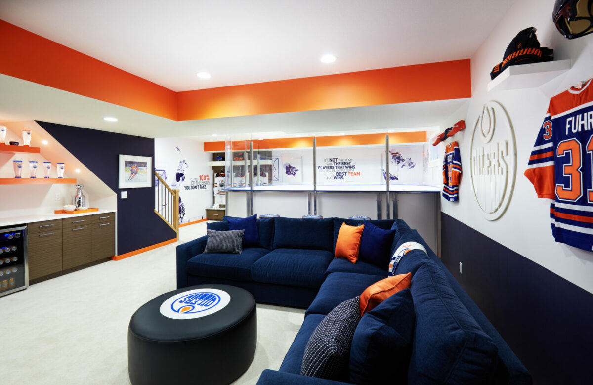 Bundle the Oilers® Fan Cave package with the purchase of any Coventry Homes model and build your home, your way. Enjoy our base package or customize with many amazing options to fit your unique style. The Edmonton Oilers and associated logos are registered trademarks owned by Edmonton Oilers Hockey Corp. and are used under license. All rights reserved. Oilers Fan Cave featured in the Edmonton Journal