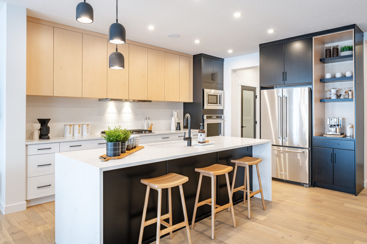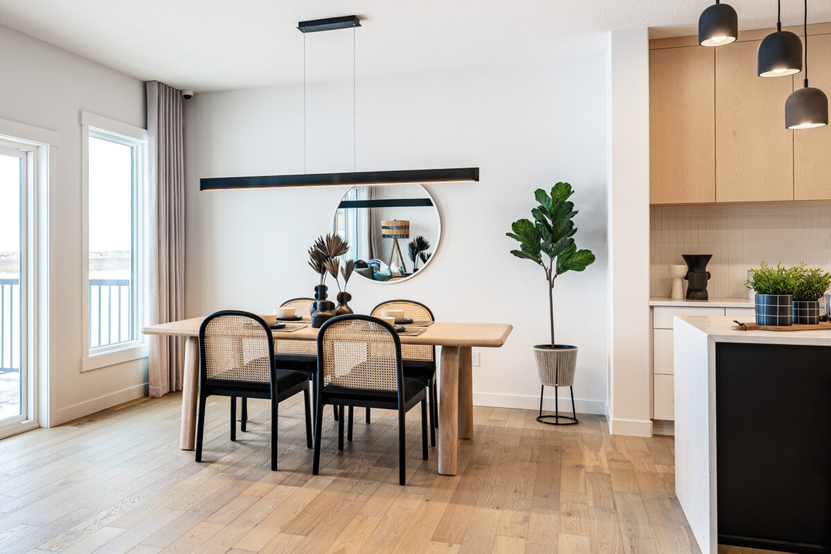 Welcome to the Dione showhome in the new community of Nouveau in St. Albert. With a Nordic inspired aesthetic, the home features the standard floorplan option with an open main floor and large central kitchen which opens on to the dining nook and great room. Full hardwood stairs lead to the second floor which opens up to a large bonus room with tray ceiling, front primary suite, laundry room main bath and two additional bedrooms at the back of the home. The Nordic design is carried in to the basement which features an Oilers® Fan Cave - complete with smoothie bar, training gym and sauna.