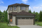 The Eon model is an efficient and functional home. The home features a front den on the main floor across from a full bathroom. The back entry features a large mudroom which leads directly to the walk through pantry and into the central kitchen. The dining nook and great room complete the back of the home. A central bonus room is found at the top of the stairs and separates the rear primary suite from the two additional bedrooms at the front of the home.